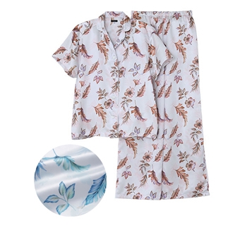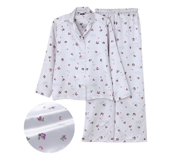 本商品は、しなやかな肌あたりと上品な光沢感のあるバターサテン素材を採用。襟元のシルエットがかわいらしい シャツスタイルのデザインで、小花柄とフルーツメッセージ柄、トレンドのボタニカル柄をラインアップしました。リラックスタイムにぴったりの素材と大人かわいいデザインにこだわったおうち時間もかわいく、楽しく過ごせるパジャマです。
