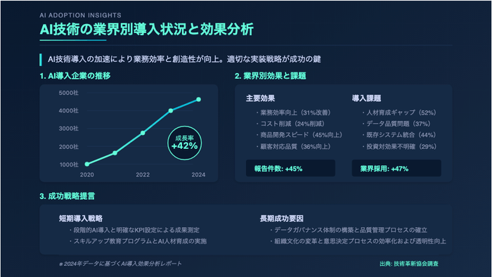 本機能を利用すると、「タイトル」と「内容」を入力するだけで、AIが最適なスライドデザインを自動生成します。さらに、Web検索機能を活用することで、情報の補完もスムーズに行えます。デザインのプレビューはリアルタイムで表示されるため、スライドの完成イメージを即座に確認できます。