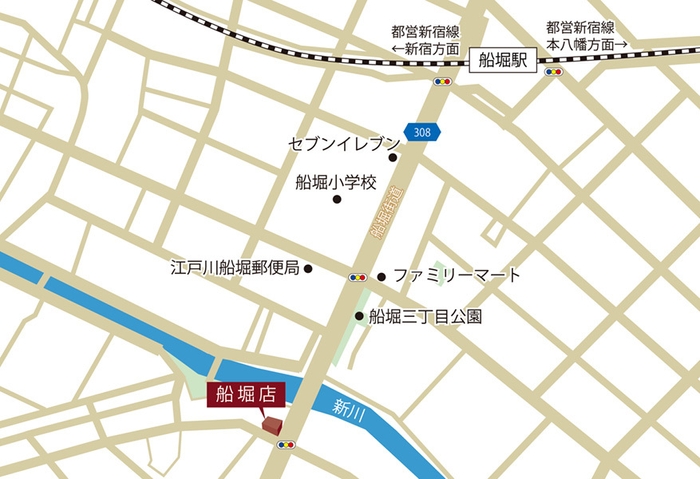 開設場所は、船堀街道沿いの立地で店舗裏手には新川が流れており桜の見所でも有名なエリアになります。都営新宿線「船堀」駅から歩いて6分と電車でのアクセスが良好な他、お客様用の駐車スペースも確保しているので、お車でもお気軽に来店頂けます。