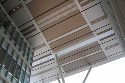 スパンドレルとは、取付けビスが隠れるように成形された金属化粧板。共同住宅やビル物の天井材として使われています。