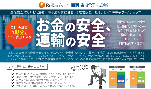 【中小運輸業経営者・後継者限定】ReBank✕東海電子ワークショップ「お金の安全、運輸の安全」8月28日(水) 無料開催のお知らせ