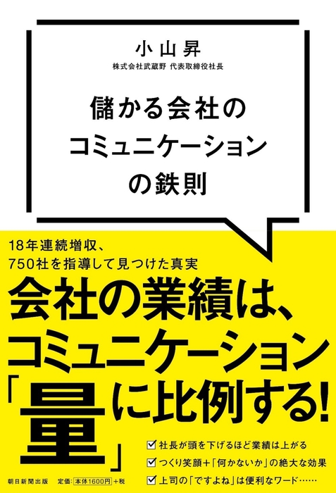株式会社武蔵野(所在地:東京都小金井市)代表取締役社長 小山昇の最新著書『儲かる会社のコミュニケーションの鉄則』が2020年12月7日(月)に朝日新聞出版より発売されました。発売初日からAmazonビジネス書ランキング第1位!(kindle版を除く)新卒離職率4.2%を誇る会社のコミュニケーションの仕組みをご紹介します。