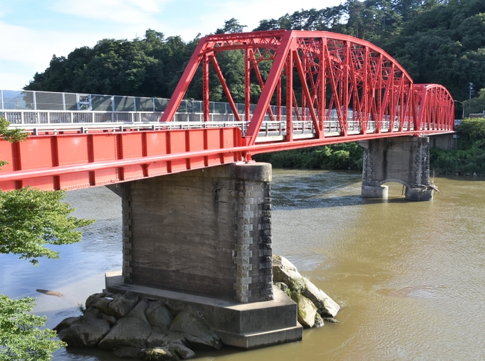 丸森橋は、戦前に作られたプラットトラス道路橋として宮城県内で唯一現存している石張りの橋脚も特徴的な貴重な土木遺産です。