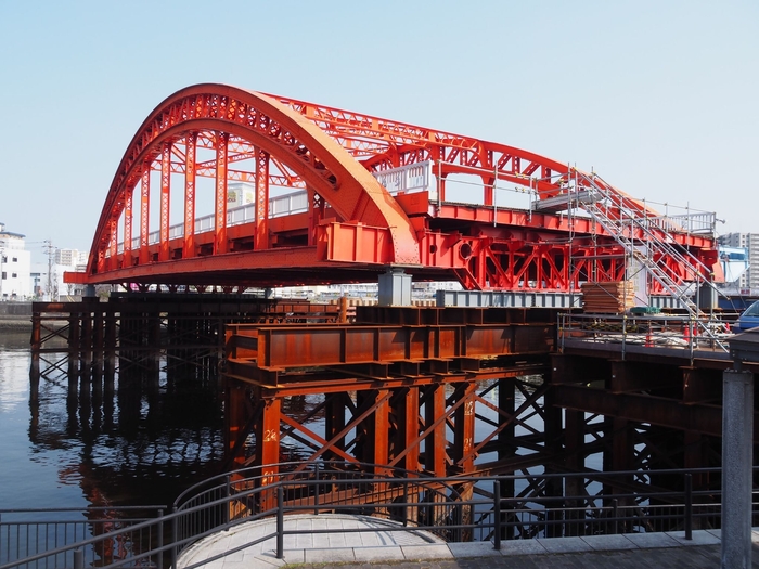 中川橋は、中川運河とともに竣工したブレーストリブタイドアーチ橋で、平成末に「横取り工法」で改修して次世代へつながれた貴重な土木遺産です。