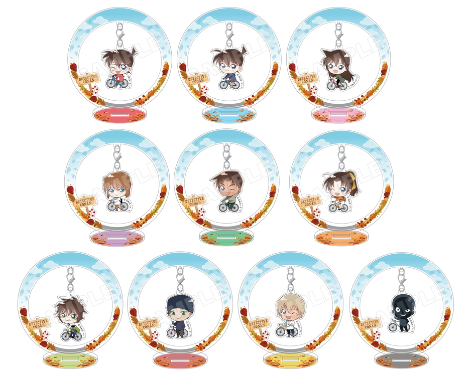 江戸川コナン、工藤新一、毛利蘭、灰原哀、服部平次、遠山和葉、世良真純、赤井秀一、安室透、犯人、全10キャラクターのオリジナルデフォルメイラストを使用した各商品と、2017年の“AGF”でも好評を博した「星」をテーマにした、江戸川コナン、工藤新一、灰原哀、服部平次、赤井秀一、安室透、怪盗キッドの描き下ろしイラストを使用した新規商品をご用意しました。