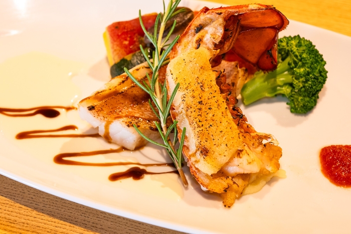本館レストラン(The Day GRILL)では、モエ・エ・シャンドンの華やかな果実味に合わせた冬限定のコースディナーを提供。前菜の「炙りカマンベールと冬野菜のサラダ」にはじまり、「オマール海老のパナード焼き」や「国産牛フィレ肉のグリル〜赤ワイン香るソース〜」など、シャンパンの泡と響き合う料理長渾身の逸品をお楽しみいただけます。
