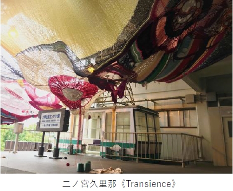 ロープウェーの休止線ホームを覆いつくすように広がる編み地。
