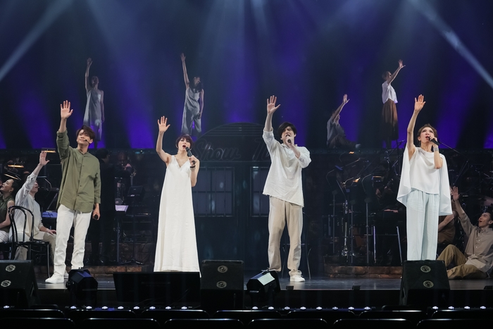 後半は聴かせるヴォーカル曲が続く。米倉と城田のハーモニーが美しい「フォーリング・スローリー」、森崎ウィンによる切なさが迫る一曲「頭の中の壁」(『ジェイミー』)圧巻の歌唱力を見せつけたJKimによる「見果てぬ夢」(『ラ・マンチャの男』)などのミュージカル曲から「イマジン」「ハレルヤ」などポップス曲まで幅広く、耳も心も幸福感で満たされた。城田が作詞・作曲を手がけたオリジナルのバラード「SHOW MUST GO ON」では、キャスト全員が手話を取り入れた振付を踊りながら思いの丈を歌う。エンターテインメントの意義を改めて想いながら、劇場でこの瞬間に浸れることに感謝した。
