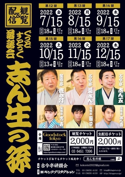 金原亭世之介、古今亭菊志ん、古今亭志ん五という同門でキャリアの違う3人が切磋琢磨!『ぐっどすとっく落語会志ん生の孫』10~12月公演開催! カンフェティにてチケット発売中