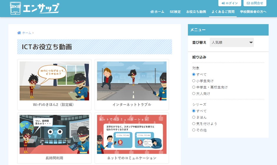 これらのリスクを軽減させるため、小学生・中学生・高校生から大人(教員や保護者など)まで、ICTについて手軽に学べる動画コンテンツを公開いたしました。