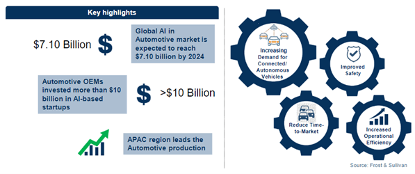 AIは従来の技術課題を克服し、生産性向上と収益増加という観点で、自動車業界にとっては大きなメリットをもたらすと考えられる。