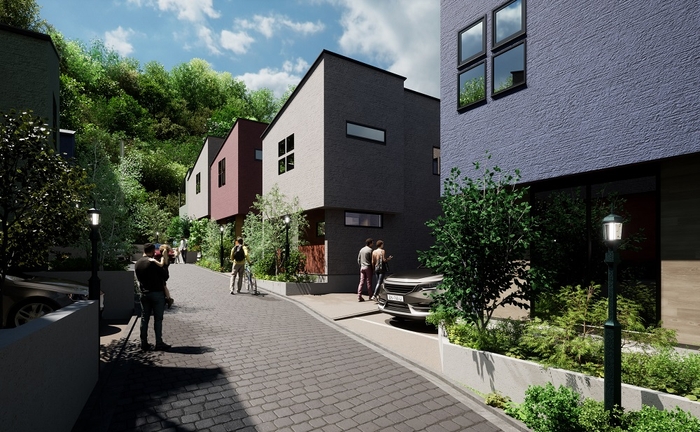 戸建ての「グレーシアライフ新綱島」では、住宅街全体のモダンな街並みを再現。実際に街の中を歩いているような臨場感でご確認いただけます。建物内部は、内装コーディネートの質感にもこだわり、お住まいのイメージが持てる工夫を施しています。2022年7月25日(月)にウェブサイトを公開し、10月から販売します。