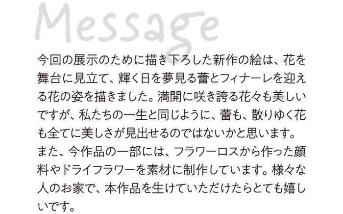 フラワーロスをテーマに開催中の合同展示会FLOWER LOSS, ARTist(フラワーロス、アーティスト)花染花馥研究所より「フラワーロス」というテーマを提供し開催。