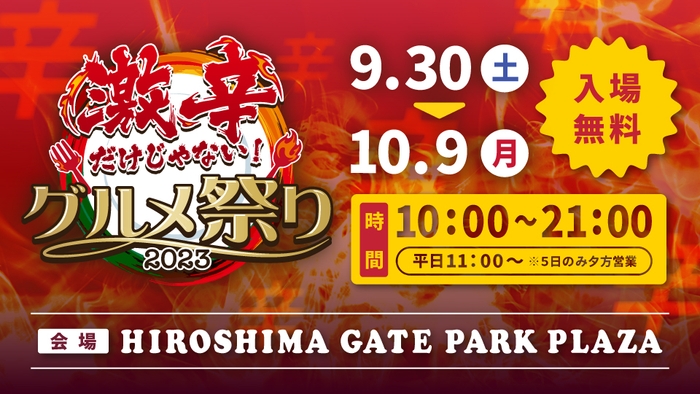 広島ホームテレビ(所在地:広島県広島市)は、2023年9月30日(土)~10月9日(月祝) 「激辛だけじゃない!グルメ祭り2023」をひろしまゲートパークで開催いたします。