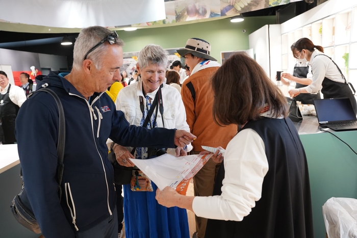 当日は、パビリオン内のプロモーションスペースに約400名の来場者をお迎えし、自社ブランド「京都蜂蜜酒醸造所」が手がける関西産はちみつ使用のミードをご試飲いただきました。多くの方に好評をいただき、来場者プレゼントとして用意した100セットの「スティックハニープラス 関西蜂蜜食べ比べセット」もすべて配布完了となりました。また、会場内にて実施したアンケートでは、回答者約350名のうち98%の方が試飲したミードを「美味しい」と回答。関西発の新しいお酒として、多くの方々に関心と期待を寄せていただける結果となりました。同万博では「いのち輝く未来社会のデザイン」をテーマに、ミツバチや蜂蜜にまつわる展示も多く、ミツバチの営みや蜂蜜といった自然由来の資源が密接に結びついていることを実感しています。金市商店では、今後も10月13日まで開催される万博と歩調を合わせ、蜂蜜やミードの魅力を国内外へ発信してまいります。