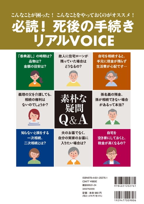 その他、素朴な疑問Q&Aや、「こんなことが困った」「やっておいてよかった」などの経験者によるリアルな体験談も紹介。家族・親戚間で揉めがちなポイントや、実家の空き家問題など、事前に知っておくことでトラブルを回避できる情報も必読です。