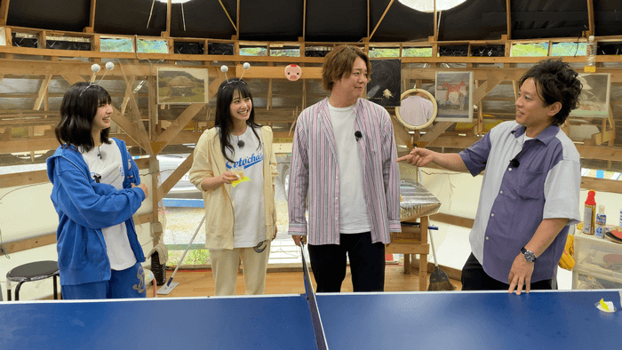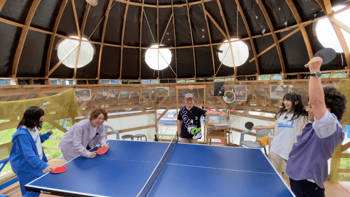 続いて「宇宙の駅」に舞台を移し、UFO内に設置された卓球台で「スペースピンポンバトル」に挑戦!