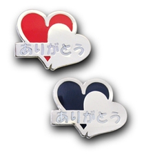 夏の暑さも吹き飛ばすような勢いで、毎年8月に開催されるのは「おどるんや~紀州よさこい祭り」。2つのハートと「ありがとう」のメッセージを組み合わせた「おどるんやピンバッジ」は、文字通りのハートフルなデザインを色違いの赤と紺で仕上げた2バージョンが完成し、優れた品質と共に大反響を巻き起こしたそうです。老いも若きも1つになって雰囲気に酔いしれる郷土の行事を、当社の提供させていただいたオーダーメイドグッズは、サポーターの方々と一緒に盛り上げてくれました。