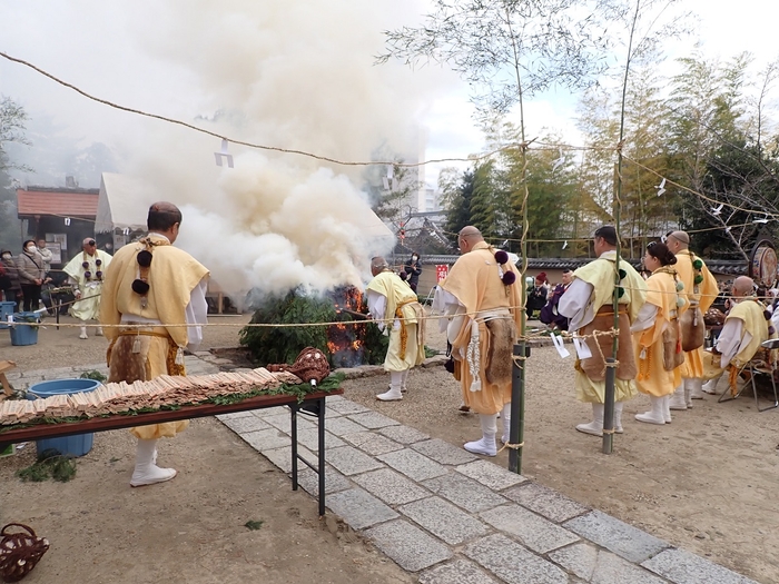 当日は暖かい日差しの下、盛大にお焚き上げが行われました。