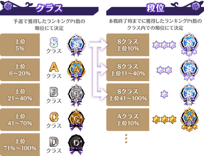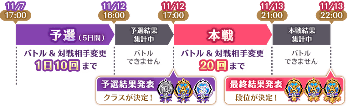 ※本戦では、「ランキングPt」を獲得しても、クラスの変動はありません。