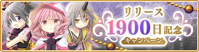 11月3日に、サービス開始から1900日を迎えたことを記念して、11月7日17:00より『リリース1900日記念キャンペーン』を開始いたしました。