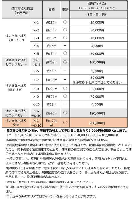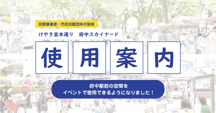 使用希望者は、けやき並木通りと府中スカイナード北口・南口(ペデストリアンデッキ)の指定のエリアを使用することが出来ます。