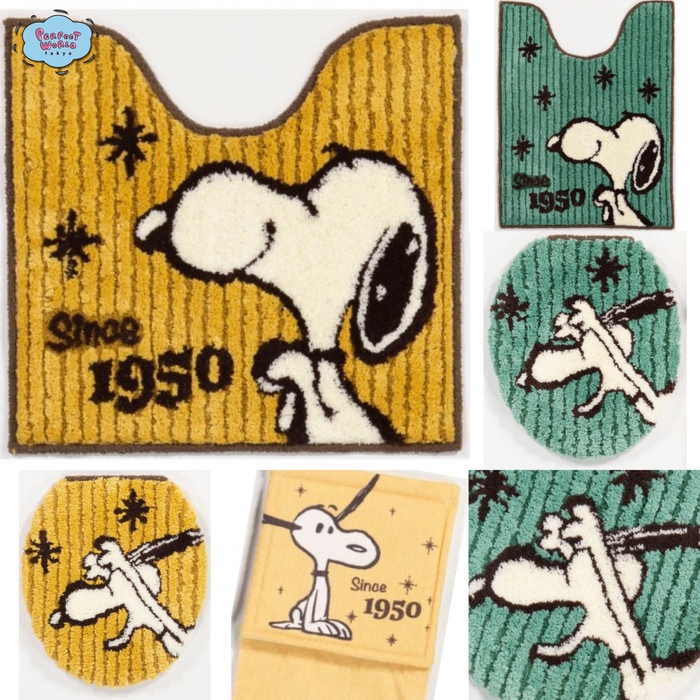 トイレの中をスヌーピーのアイテムで模様替えしたくなる、フタカバーやマット、ペーパーホルダーカバーなどが勢揃い♪