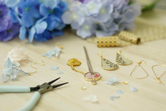 ・「作る」:箱根寄木細工とあじさいを組み合わせたアクセサリー作り