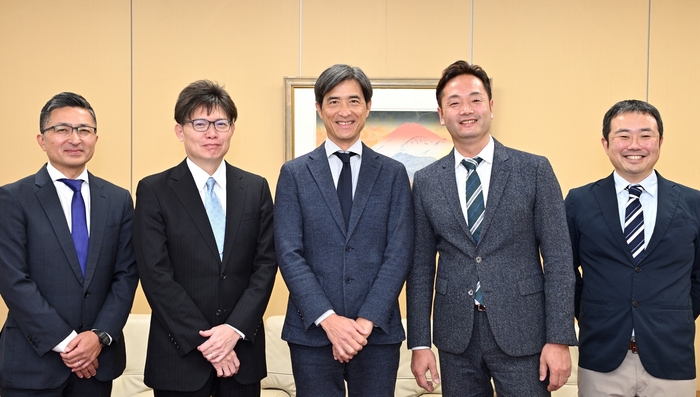 左から、株式会社マクニカ テクスター カンパニー ソリューションビジネス推進室 荒木 真一、新事業本部長 森 重憲、テクスター カンパニー プレジデント 千賀 航二、株式会社NEXTAGE 代表取締役 中村 拓也 氏、事業開発室長 兼 ビジネス推進支援サービス部 部長 佐久間 麻守 氏