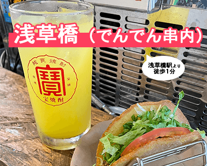 •住所:東京都台東区浅草橋1-24-1 高政ビル 1F「立ち呑みでんでん串浅草橋駅前店」