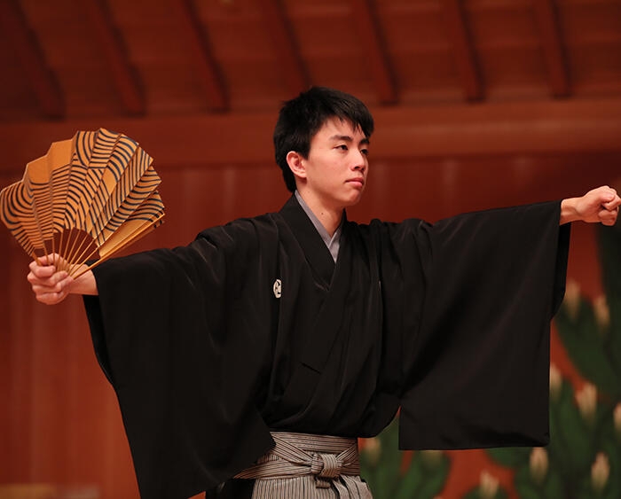 学生でありながら、狂言師としてすでに活躍している井上さん。学業のかたわら稽古に励み、年5〜6回行われる公演を中心に年間50日も舞台に立っています。