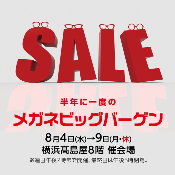 明治20年創業、今年で134年の歴史を持つ眼鏡店・株式会社金鳳堂(東京都港区、代表取締役社長:恒吉裕司)は、8月4日(水)→ 9日(月・休)・横浜髙島屋8階 催会場にて「半年に一度のメガネビッグバーゲン」を開催します。世界が認めた技術力でつくられる福井・鯖江製のメガネフレームをレンズ付のお買得価格にて豊富なカラー&デザインで取り揃えます。