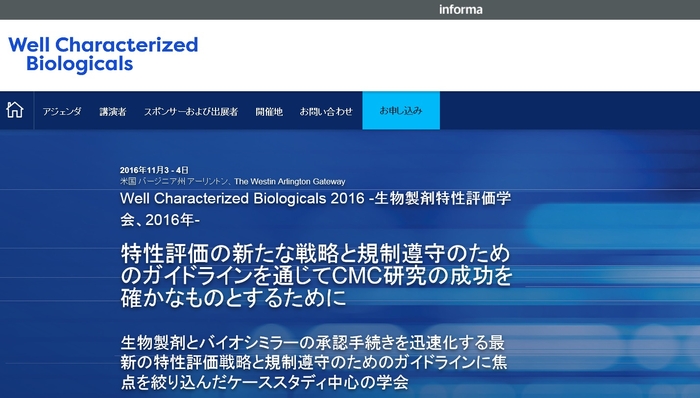 国際学会 「生物製剤特性評価学会 2016年」(IBC Life Sciences主催)の参加お申込み受付開始