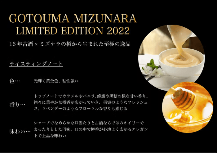 そして希少な16年古酒をあえてブレンドせずにミズナラ樽で熟成すること約一年・・・。今までにない蜂蜜のような甘い香りが漂う、その名も泡盛を超えた『“奇跡の樽熟成スピリッツ!”五頭馬 ミズナラ』が完成した。