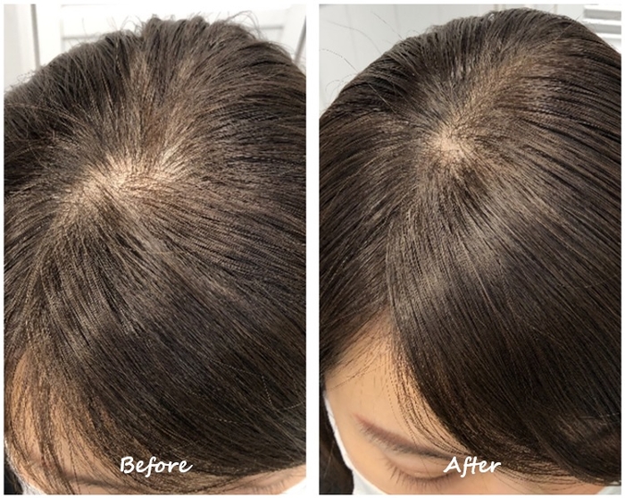 髪の毛1本に2~4本のファイバー毛を結びつけてナチュラルにボリュームアップするウイッグではないヘアスタイル。