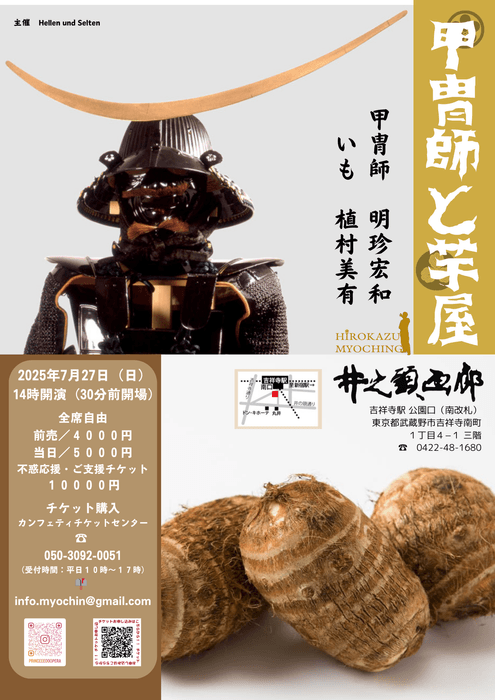 【芋屋大襲撃】~その時歴史が動いた…とか、動かないとか ~ 音楽劇「甲冑師と芋屋」が2025年7月27日 (日)に井之頭画廊(東京都武蔵野市吉祥寺本町1-4-1 井の頭ビル3F)にて上演されます。