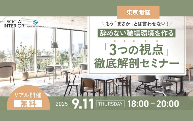 みらいコンサルティンググループ(本社:東京都中央区、代表:久保 光雄 岡⽥ 烈司)は、2025年9月11日にセミナー『もう「まさか」は言わせない!辞めない職場環境を作る「3つの視点」徹底解剖セミナー』を東京にて開催します。