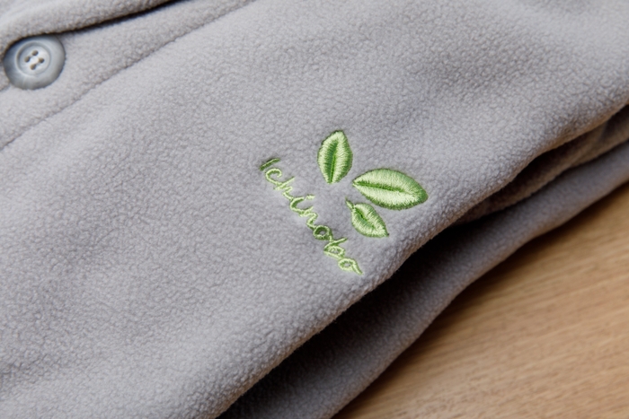 肌寒い時はさっとこのガウンを羽織れば、リラックス気分がくずれることなく寒さをしのげます。前はボタン仕上げ、胸元にはオリジナルの刺繍入りです。男女兼用のフリーサイズ。