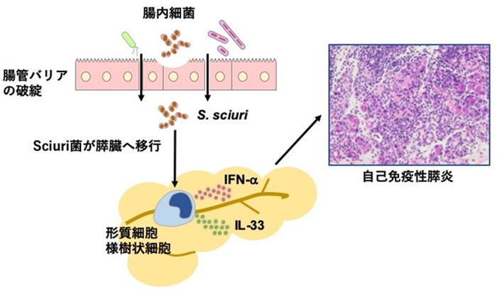 (腸管バリアの破綻に伴い、膵臓に定着するStaphylococcus sciuriが自己免疫性膵炎を悪化させる)