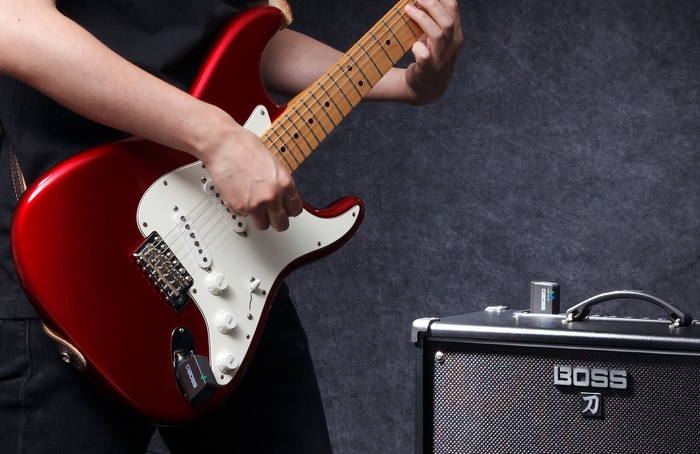 ギターを演奏する際、通常はギターとアンプなどをケーブルで接続して音を出力しますが、ワイヤレス・システムで接続することにより、ライブや仲間とのセッション、自宅での演奏など、様々な場面で、ケーブルを一切気にすることのないストレス・フリーな演奏環境が実現できます。しかしながら、ワイヤレス・システムは、一般的に受信機が大型であること、複雑なワイヤレス接続の設定が必要なこと、さらには高価であることなどにより、アマチュアの演奏者にとって導入が難しい面がありました。