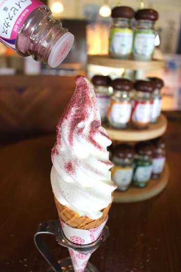 最大の特徴は、ソフトクリームに“塩をかけて食べる”というユニークなスタイル。