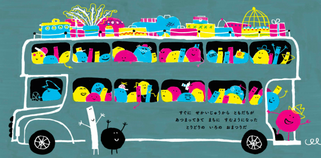 本書では、「せん」と「てん」の異なる「かたち」が出会い、遊びからはじまり、いろいろなものを作り始め、「いろ」づいていきます。お互いを受け入れ、そして、新しい発見が生まれること。共に生きることの大切さを描く作品です。子どもはもちろん、大人にも気づきを与えてくれます。