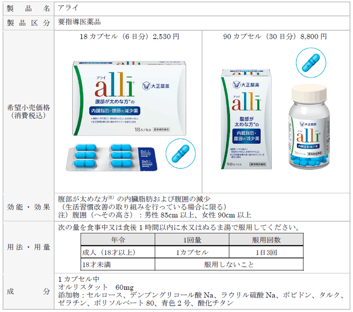 「アライ」は、脂肪吸収阻害作用をもつオルリスタットを有効成分とし、服用とあわせて食事・運動を改善(生活習慣の改善)することにより内臓脂肪を減少させ、結果として腹囲の減少につなげることが期待でき、薬局・薬店で薬剤師にご相談の上、購入可能なOTC医薬品です。