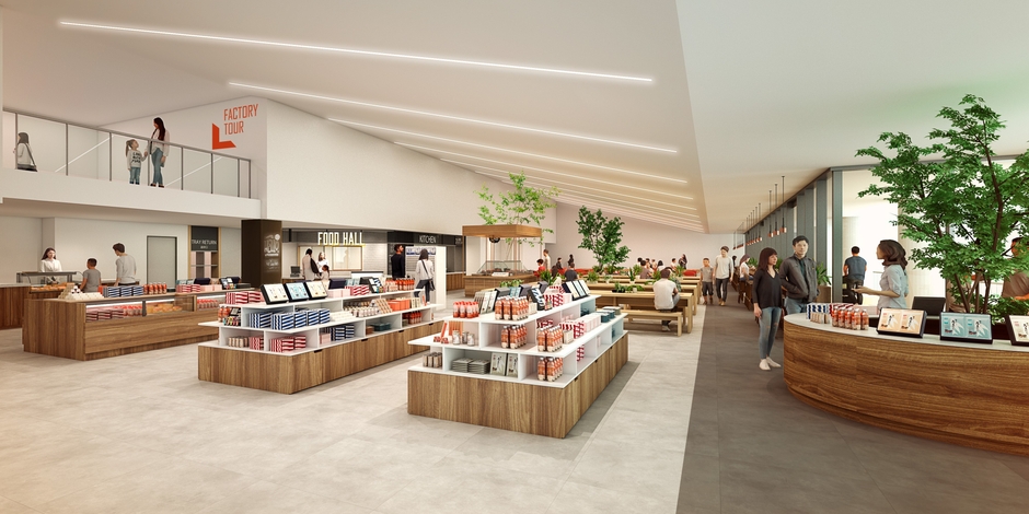 また、工場は製品の製造だけではなく、「地域住民・観光客・従業員が交流できる場」をコンセプトとし、工場見学・フードコート・マーケット・明太子の漬け込み体験ができる場を提供し、篠栗町と連携しながら、観光客の受け入れ・地域活性化も目指します。一般公開は2023年7月中旬の予定です。