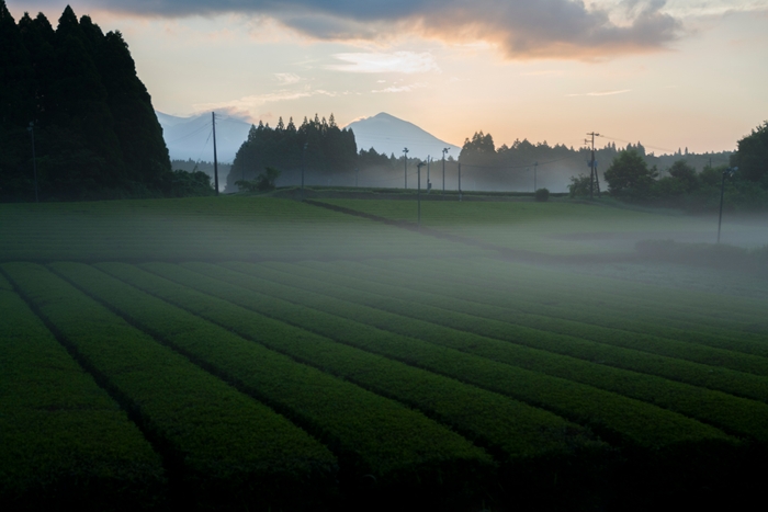 界 霧島が位置する鹿児島県は、全国でも有数のお茶の産地であり、2020年3月に農林水産省が発表した統計では、茶葉の産出額が静岡県を超えて日本一になりました。鹿児島県の日本茶は、毎年行われる日本茶の品評会でも高い評価を得ています。なかでも霧島茶は、九州南部の温暖な地域でありながら、山麓の昼夜の寒暖差があり、朝霧の立つ霧島独自の自然環境の中で育ちます。その味わいは滋味豊かで香り高く、澄んだ水の色が特徴です。霧島の大自然が育む霧島茶の魅力を、新茶の季節に存分に味わってほしい、との思いから「霧島茶滞在」を開発しました。