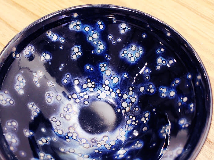 漆黒に近い濃紺の肌に無数の星のような斑紋が浮かび「小碗の中の大宇宙」とも称される曜変天目茶碗。南宋時代のある時期にのみ中国・建窯で焼かれたものの、現在残存するのは室町時代に日本に渡った三碗のみで、いずれも国宝に指定されています。