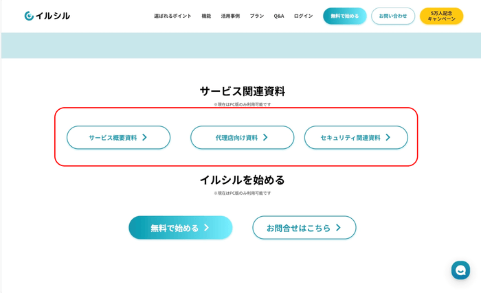公開された各種資料は「イルシル」公式ホームページ内下方のサービス関連資料よりダウンロードいただけます。