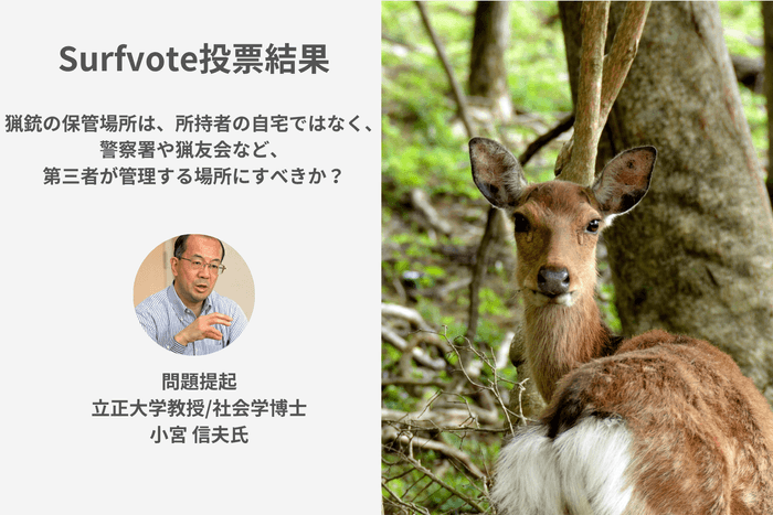 Surfvote投票結果 「猟銃の保管場所は、所持者の自宅ではなく、警察署や猟友会など、第三者が管理する場所にすべきか?」