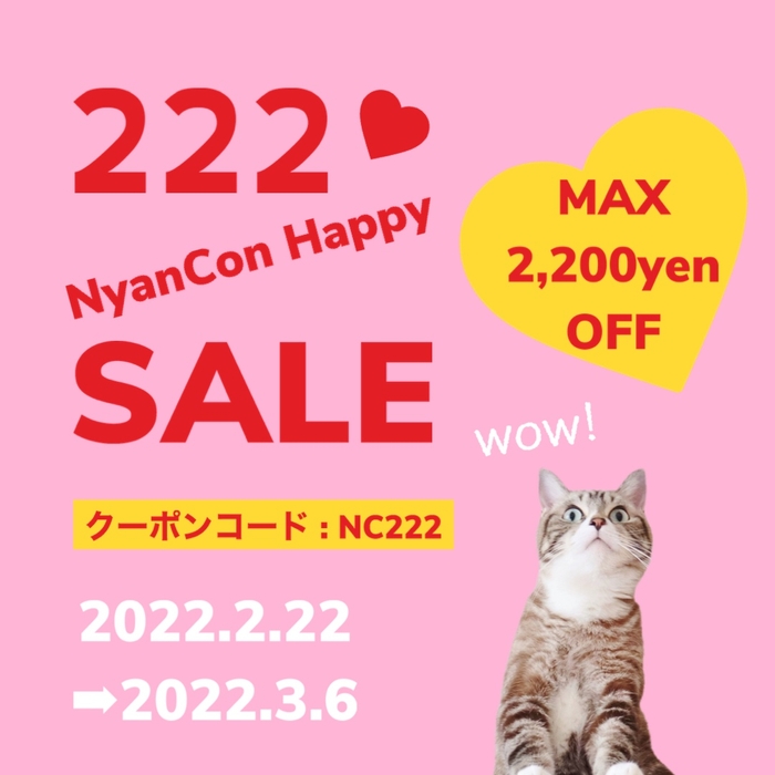 222NyanConハッピーセール開催 🐾 2022.2.22 tue → 2022.3.6 sun2022年2月22日はスーパー猫の日!日頃の感謝を込めてMAX 2,200yen OFF!!2022-02-22 18:30NyanCon日頃の感謝を込めて❤️222NyanConハッピーセールを開催いたします!!セール期間中に当SHOPの商品を合計5,500円以上ご購入いただくと、なんと!2,200円割引いたします。 ご購入の際は、必ず下記クーポンコードをご入力ください。 クーポンコード:NC222 ❤️セール期間 2022.2.22 tue~2022.3.6 sun❤️セール割引対象商品 当SHOP内で販売されている全商品期間中新商品も登場予定♡商品の詳細商品の詳細商品の詳細商品の詳細商品の詳細https://nyancon.shop/画像・ファイル一覧一括ダウンロード
