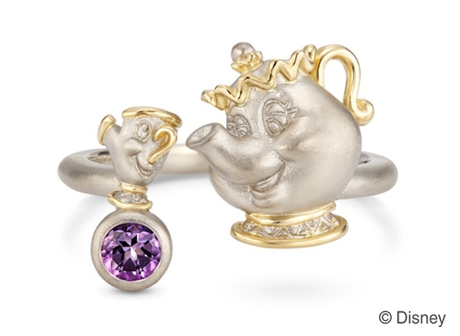 「ポット夫人」と「チップ」の陶器のような質感と、話しかけるような表情をリアルに再現。また、「ポット夫人」のイメージに合わせアメシストを組み合わせました。